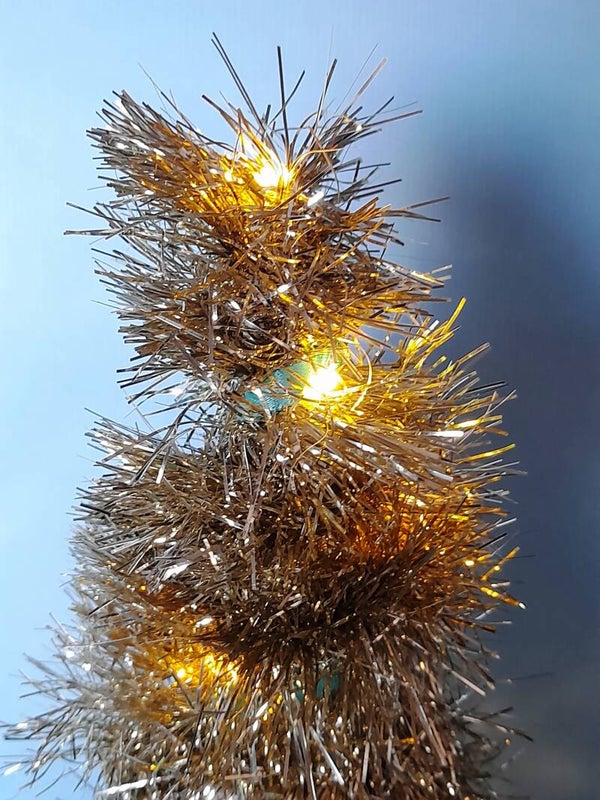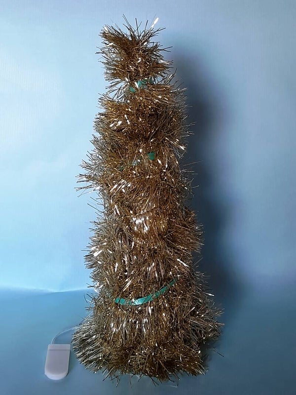 Albero di Natale artistico ed ecologico fatto a mano con la ghirlanda LED ricaricabile.